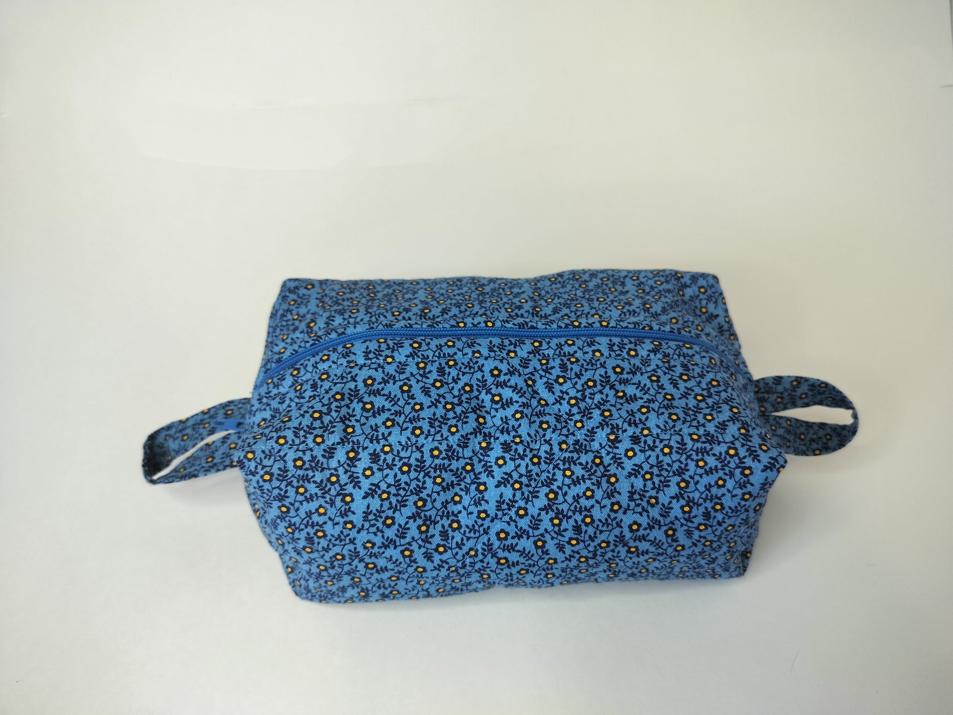 Carry sunshine wherever you go with our Blue Flower Box Bag. The vibrant blue fabric is adorned with charming blue flowers and a yellow-speckled interior. Measuring a compact 3 by 4 by 7 inches, it's the perfect size for all your essentials. (Pun intended, bag is not actually filled with sun.)